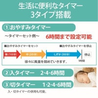 さらに同時セットによる併用が便利な入タイマー(2/4/6時間)と切タイマー(1/2/4/6時間)で快適なお目覚めをサポートします。